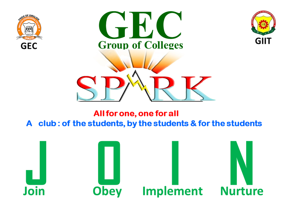 With the humble beginning in the month april year 2018. housed in the hostel offered by the GEC Groups of colleges, SPARK CLUB which have motto All for one, one for all, began its journey as first College Club , with just 4 members.